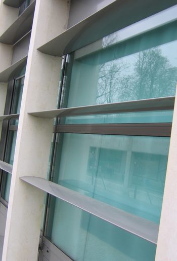 ![]() Sur cette fenêtre, des clins horizontaux en métal, sensés protéger les baies vitrées des rayons du soleil |