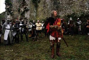 Reconstitution au pied des remparts, dans les années 2000, époque durant laquelle la Geste de Montaiguillon y organisait des rassemblements |