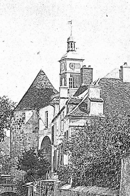 Chemin faisant, il en vint à supposer que la photo de l’énigme aurait pu correspondre à une représentation de la tour "beffroi" installée sur l’ancien hotel de ville, détruit en 1873. Celui-ci était situé juste après le pont du marché (à l’emplacement actuel du monument aux morts de 1870 et du marbrier). C’était encore bien vu, mais ce n’était toujours pas la bonne réponse. En parlant de cet ancien hotel de ville, on est en droit de se demander si l’architecture de l’actuel beffroi n’a pas été inspirée par celle de cette première tour. La photo d’à côté pourrait militer en ce sens. L’illustration ci-contre correspond à la seule photographie connue de l’ancien édifice, photo à partir de laquelle des gravures ont été réalisées par la suite. (Illustration de l’ouvrage "Crécy-en-Brie et La Vallée du Grand Morin" Sabine Gervais et René Blaise) |