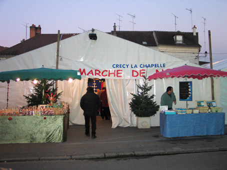 L’annonce de la présence d’un marché de Noël à Crécy les 11 et 12 décembre dernier, et la controverse concernant la grande tente de toile qui l’abritait, m’ont incité à le visiter. J’avais aussi l’idée de compléter mes garnitures de Noël en faisant l’achat de quelques belles boules et guirlandes scintillantes.