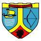 « Tiercé en pairle renversé : au premier d’azur au voilier d’or voguant sur une onde d’argent, au deuxième d’azur à l’arc cousu de sable encoché d’une flèche du même poséee au pal, au troisième de gueules à la grappe de raisin cousue de sable ; au apirle renversé d’or brochant sur la partition ». (je vous rassure, ce n’est pas de moi)