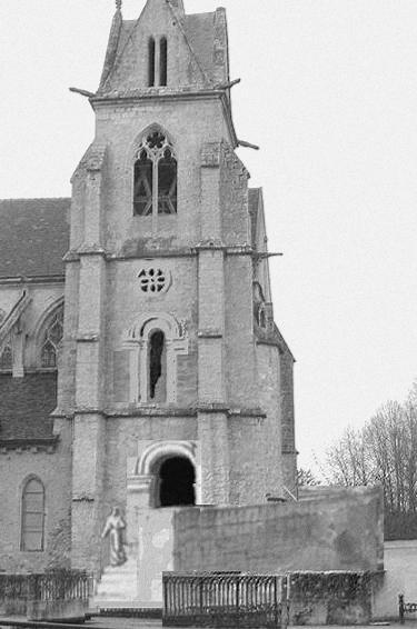 Je me suis amusé à réaliser un petit montage pour remettre en place les éléments insolites de la gravure, sur le clocher tel qu’il nous apparait aujourd’hui. La photo est prise selon un angle très voisin de celui retenu par l’artiste de la gravure. Au XIX ème siècle, le niveau du sol de l’église était plus haut de près de deux mètres. La configuration des abords du bâtiment était nécessairement différente et une entrée à cet endroit de l’édifice n’aurait pas été surprenante. Toutefois, je n’ai trouvé ni autre gravure, ni témoignage pour confirmer une telle disposition architecturale. A la fin du XIX siècle cette porte, si elle a un jour existé, avait disparu. jna |
