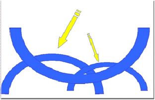 Voici que se dessine ce que nous pouvons appeler sans prétention, mais avec fierté, le Chiffre de Crécy, aux trois croissants d’argent entrelacés. Trois arcs de cercles, qui s’entrelacent dans une position bien précise et somme toute, naturelle, pour aboutir à la figure qui nous est familière (cf. figure ci-dessous).