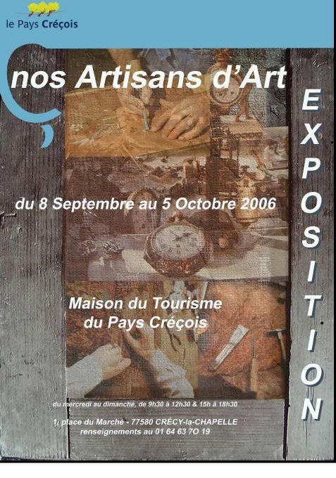 Une nouvelle exposition a lieu à la maison du tourisme du Pays créçois à partir du 8 septembre et jusqu’au 5 octobre 2006. Le thème est "Nos artisans d’art". C’est du mercredi au samedi de 9h30 à 12h30 et de 15h à 18h30. 1, place du marché à Crécy-la-Chapelle. Renseignements 01.64.63.70.19