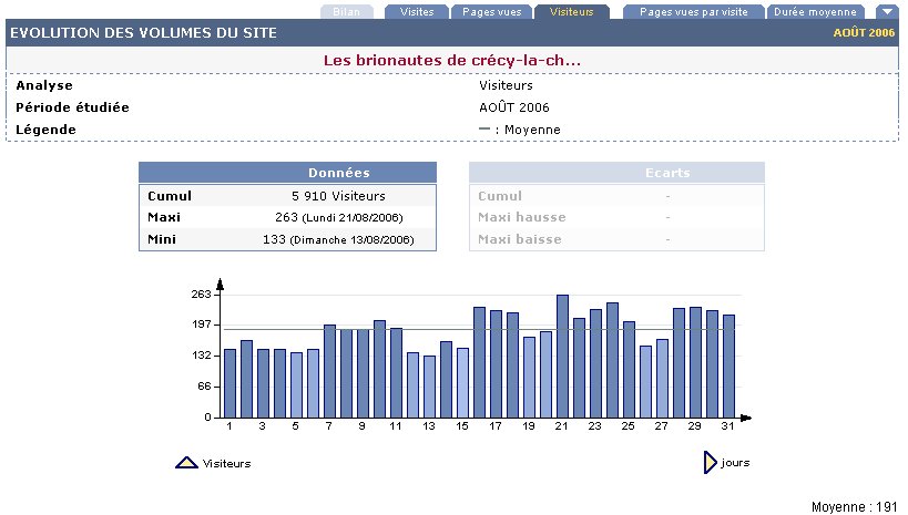 En cet 2006, l’audience de notre site www.brionautes.com est au plus haut. Malgré les vacances, les internautes sont venus de plus en plus nombreux sur notre site.