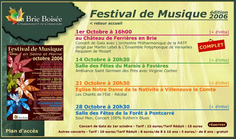 La communauté de communes de la Brie Boisée (Villeneuve-le-Comte, Villeneuve-Saint-Denis, Ferrières et Pontcarré) organise comme l’an dernier un festival de musique.