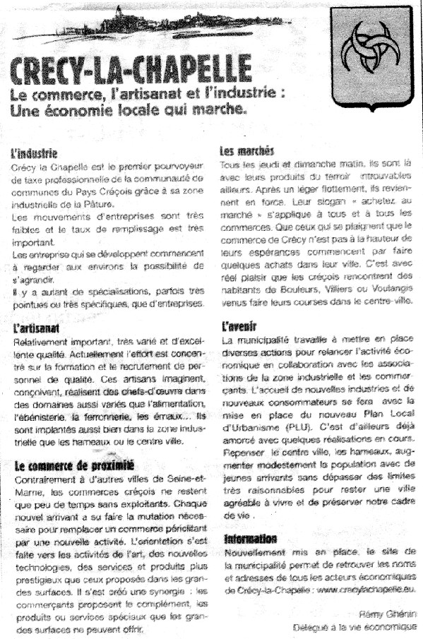Eh oui, il s’agit d’une communication de la mairie de Crécy-la-Chapelle parue dans la Marne du 14 février 2007.