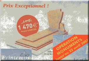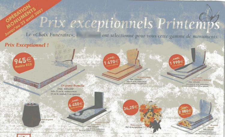 | Mourez plutôt avant le 22 avril, pour profiter des promos exceptionnelles de printemps proposées par une compagnie de pombes funèbres de la région. C’est rassurant de savoir qu’on part gagnant. Il vous reste presque un mois pour vous décider, après ce sera trop tard. J’ai trouvé cette alléchante réclame dans le numéro du Pays Briard qui a rendu jms célèbre dans toute la Brie. |  | Si vous ne pensez pas mourir tout de suite, vous pouvez quand même acheter une pierre et la déposer au fond de votre jardin, en attendant …  Si vous n’avez pas de jardin, ce ne doit pas être drôle chez vous et il est temps de vous demandez si la vie vaut la peine d’être vêcue ! L’affiche monumentalement funéraire est dans la suite. Il y a même un papillon pour vous rappeller à quel point tout est éphémère. |
