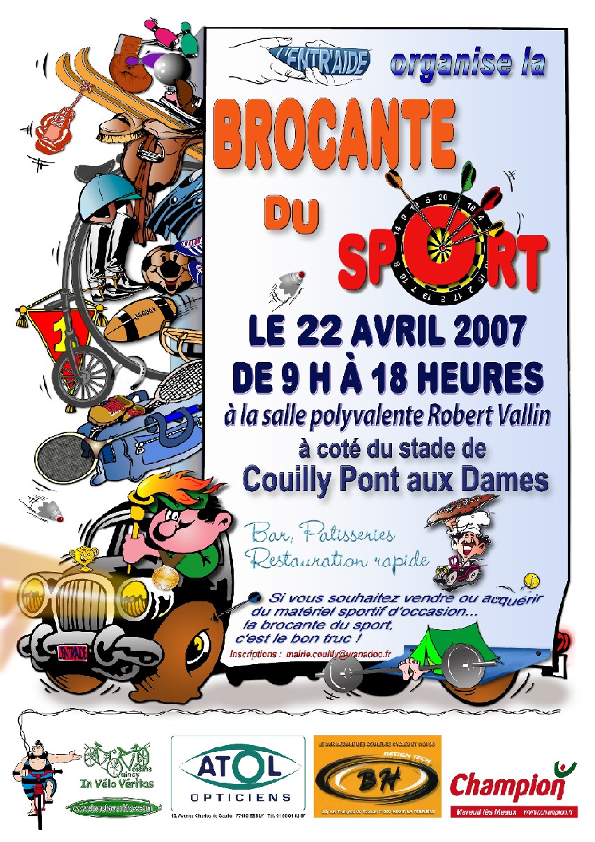 L’association "L’entr’aide" organise la brocante du sport le dimanche 22 avril à Couilly Pont-aux-Dames, salle Robert Vallin.