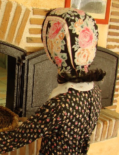 L’outil a chercher était la claie de forme triangulaire que la dame tient dans ses mains. L’autre dame introduisait la claie dans le four pour les faire cuire.