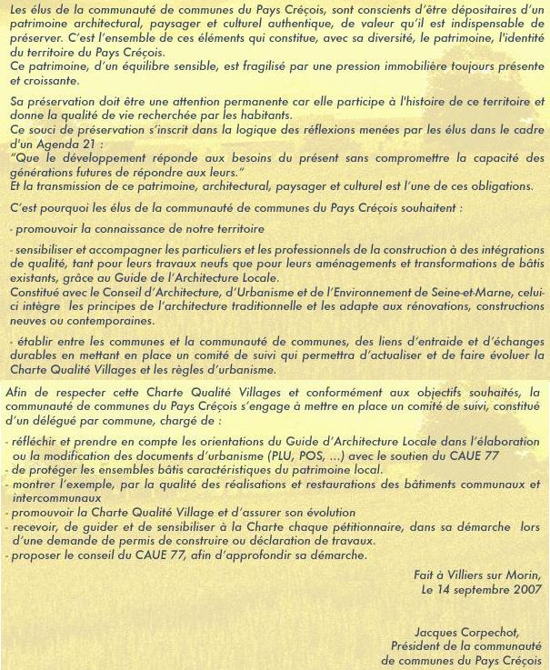 Olivier Bary SA HLM indépendante seine-et-marnaise Philippe Gonnu promoteur Quelques interventions : – de M Jarlot, conseiller municipal à Voulangis : Dans le cas du pays créçois, si l’état attribue 30% de subventions il aura donc 30% de droits d’attributions. Mais que restera-t-il à chacune des communes de la CC ? Charte qualité village Sylvie Boulley-Duparc, architecte et Laure Piedeloup, infographiste nous présentent cette petite merveille documentaire qu’est la charte qualité village. |