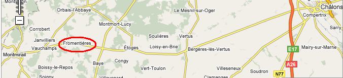 Fromentières se situe sur la D933 qui rejoint La Ferté-sous-Jouarre à Chalons-en-Champagne via Montmirail. |