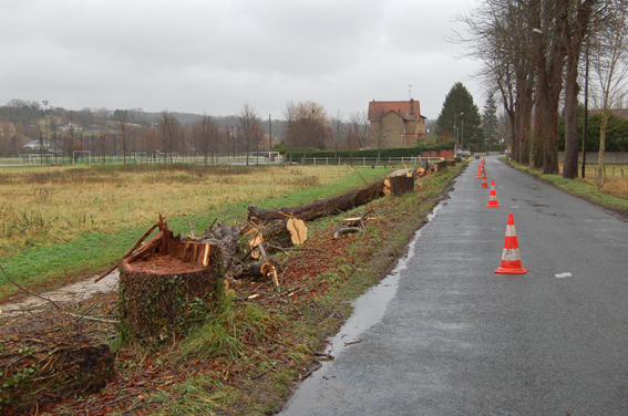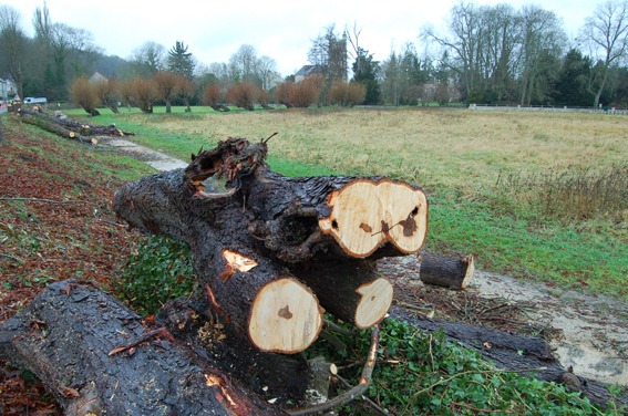 « après les arbres (peupliers) de la route de Melun (d 235) après la tempête , voici que sont coupés les arbres si pittoresques de cette route ». La circulation automobile est-elle si dense que l’on ait besoin d’élargir cette route à cet endroit?