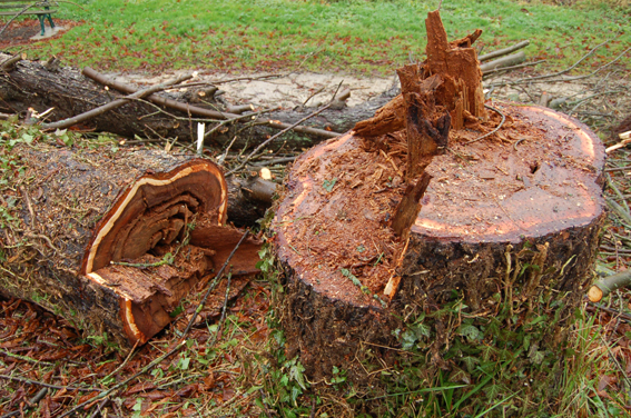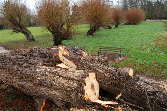 Je pense que ces arbres ont souffert de ce que j’appelerais un sabotage gnéral consécutif à des tailles menées n’importe comment. Si l ‘on regarde les photos, on peut voir une pourriture des troncs et de certaines branches qui ont été taillées. En fait, il est probable que mal taillés, sans respect des règles de l’art, ces arbres ont été la proie de champignons lignivores qui se sont installés par les plaies de coupes trop importantes .