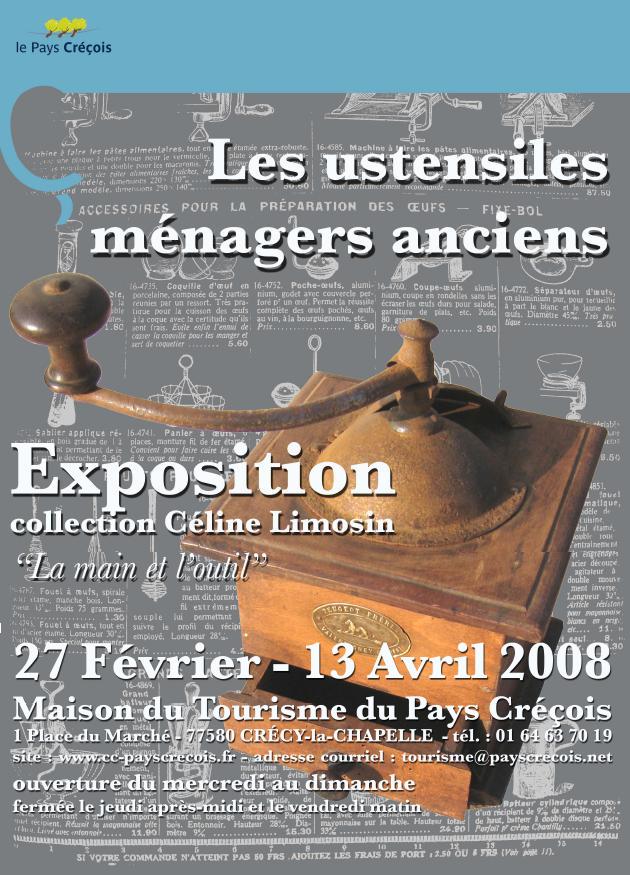 En partenariat avec l’association Office de Tourisme et la Communauté de Communes du Pays Créçois, Melle Limosin sous le nom « La Main et l’Outil » organise une exposition du 27 Février au 14 Avril, à la Maison du Tourisme du Pays Créçois, 1 Place du Marché à Crécy-la-Chapelle. Anciens et plus jeunes, venez découvrir ou redécouvrir de nombreux ustensiles ménagers anciens. Vous pourrez y apercevoir moule à tarte, presse fruits, mouli-julienne, fer à friser, téléphone d’époque….. et bien plus encore. Au commencement, cette jeune étudiante en Licence Professionnelle Tourisme option « Coordinateur de l’Espace Touristique Local » a organisé en 2006 une exposition à Vendrest, dans le cadre de ses études.