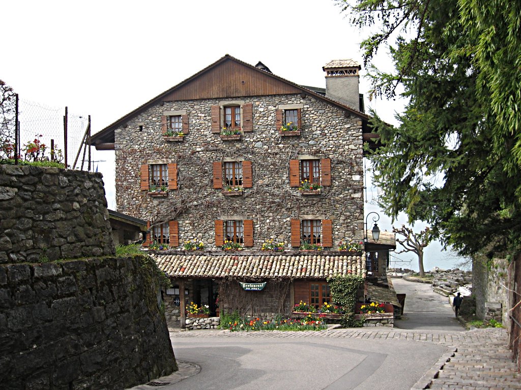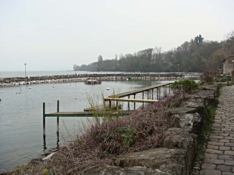 En redescendant de l’autre côté du château, on débouche sur le port de plaisance. On peut prendre le bâteau pour traverser le lac et aller à Nyon (Suisse). Boutiques, artisans, galeries animent le village, se fondant dans ce décor pittoresque.