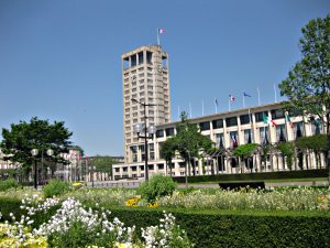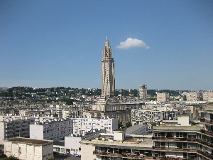 conçue par Auguste Perret, l’architecte de la reconstruction, avec en arrière-plan la ville haute