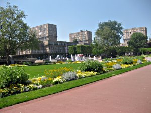 Cette place, ainsi que l’Avenue Foch, et d’autres artères, fait partie du centre ville reconstruit par l’architecte Auguste Perret. L’ensemble a été inscrit au Patrimoine Mondial de l’Humanité de l’UNESCO le 17 Juillet 2005. Admirez l’équilibre des volumes et des formes qui s’insère dans un vaste espace, largement ouvert sur un beau ciel diffusant une belle lumière, avec, en son centre, des fleurs, des arbres, des jets d’eau.