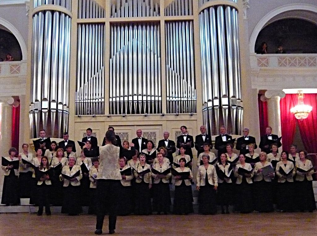 – Le dernier concert fut sans doute le plus majestueux puisqu’il se déroulait dans la grande salle de la Philharmonie de Saint Pétersbourg pleine à craquer avec 1400 spectateurs. Pour ce dernier concert où toutes les chorales invitées passaient à tour de rôle, nous avons chanté une œuvre d’un compositeur Français, Camille Saint-Saëns : le « Tollite Hostias ». Nous avons été chaleureusement remerciés pour cette interprétation et pour notre participation à ce festival. Une statuette souvenir et un diplôme nous ont été officiellement remis. Notre séjour trop court s’est achevé par un dîner spectacle au cours duquel la Directrice du Festival, Elena Bizina est venue avec son groupe folklorique « SUBBOTEYA » nous interpréter des chants et des danses de Russie pour nous remercier de notre présence.