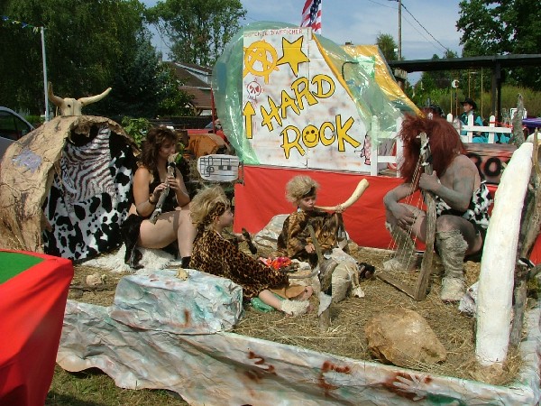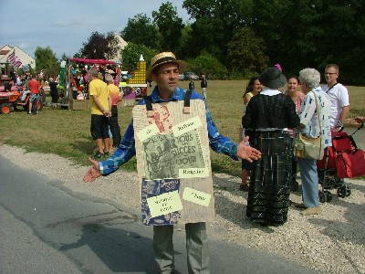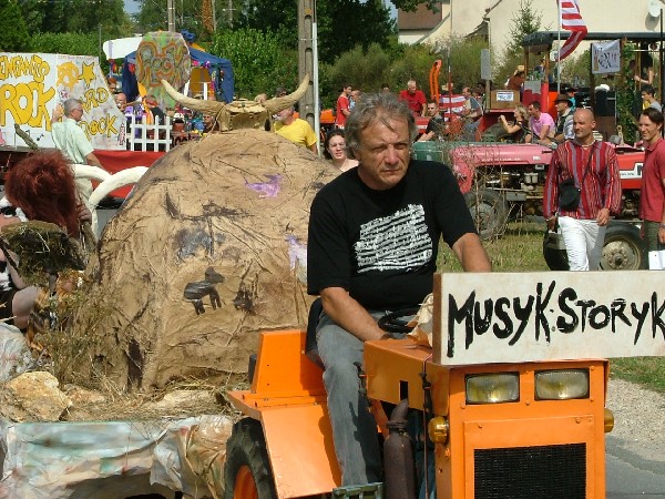 En tout cas, les punks avaient leur place dans la grande histoire de la musique … aux côtés des classiques Pierre et le lou au clair de la lune mon ami Pierrot. Tiens des cow boys … et même des cow girls heepeeeeeeeeeeee Wahou des gogo danseuses, royal au bar mais non AS, pas le poisson 🙂 Cà défile, çà rigole et arrêtes de m’envoyer des confettis, çà chatouille !!! Tiens un homme sandwich, miam c’est vrai que j’ai encore rien mangé …. mais c’est Didier, hé Didier , t’as un beau chapeau dis ! Mais sur le tracteur, c’est qui; ben oui c’est jean-paul … t’as pas amené tes ânes cette année. Enfin la buvette, fait soif. Comment çà y a plus de bière, pfffffffffffffff, quel pays !!!