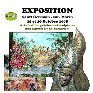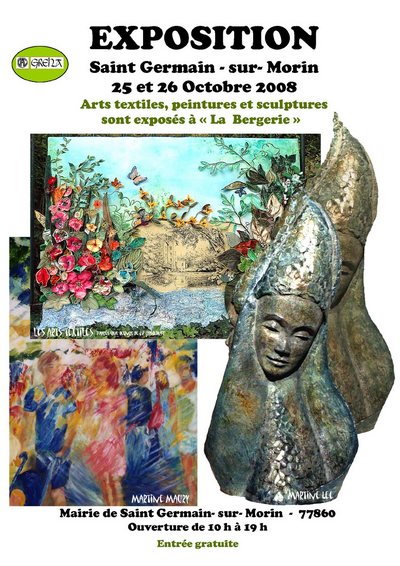 de Martine Lee sculpteur, Martine Maury peintre, et des Bobines de la Collégiale Arts Textiles les Samedi 25 et Dimanche 26 Octobre 2008 de 10 heures à 19 heures. Lors de votre visite, vous pourrez constater que ces œuvres, à priori différentes, se marient très bien. OAC = Office d’Action Culturel (St Germain) |