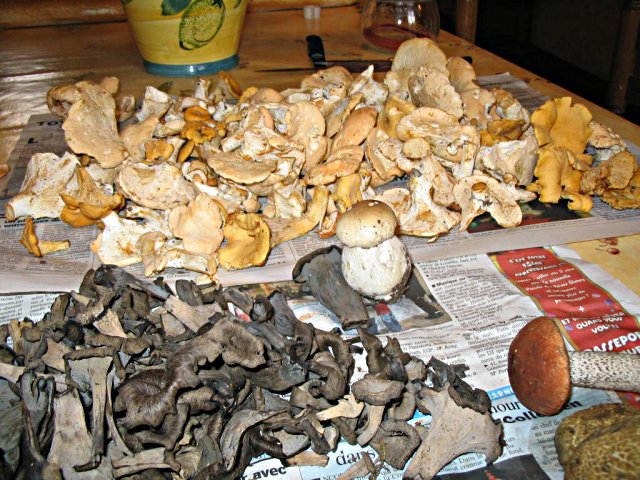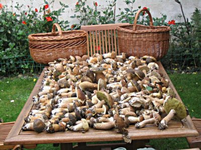 cher ,visiteur ,au lieu d’affirmer ,poser les questions sympathiquement ,la cueillette sur la table est de l’été 2006 il y en a 17 kilos cette année la des cèpes j’aurai pu en ramasser se jour la plus de 50 kilos mais non ,j’en ai laissé pour les autres et puits une fois cueillis le soir épluchés et cuisiner cela fais beaucoup de travail avec respect du gout et du produits et ensuite stérilisés quand je vais au champignons j’en ramasse 3 ou 4 kilos cela fait déjà pas mal et j’en laisse et je ni suis pas tous les jours ma cueillette de l’année est 50à 60 morilles 200 morillons,10kilos de pézizes veinées ,10kilos de st Georges et environ 15 kilos de cèpes de bordeaux 😉