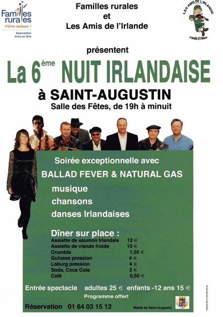La 6 ème NUIT IRLANDAISE organisée par « Familles rurales – vivre en Brie» et les « Amis de l’Irlande» se déroulera le 24 janvier 2009 à Saint Augustin (77 – près de Coulommiers).