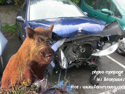 Il y aurait donc trop de sangliers dans nos forêts et la fédération régionale des chasseurs a fixé aux tireurs de Seine-et-Marne l’objectif de "10 000 sangliers abattus en 2009 (contre 7000 environ en 2008) ". En attendant qu’on les tue tous comme disait Charles IX, et en espèrant qu’en dépit de ce déluge de chevretine, il n’y ait pas plus d’accidents de chasse mortels que d’accidents de voitures, il y a donc lieu d’être prudent au volant. Cela nous concerne tous, en particulier lorsque nous traversons une zone boisée, mais pas uniquement, car en 2007 un autre accident mortel s’est produit sur l’A4 à Croissy-Beaubourg ! La nuit constitue un facteur aggravant de risque car l’automobiliste ne peut voir l’animal qu’au dernier moment.