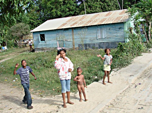 Dans les campagnes les gens sont quand même assez pauvres. Les maisons qui ressemblent à des cabanes parfois en attestent. La plupart des gens se déplacent en moto ou en vieille guimbarde plutot dans le genre camionnette, vue l’état des routes. Personne n’est vétu de haillons, pas plus là que dans la plupart des pays du monde, ils connaissent eux-aussi le textile à bas prix. L’habillement n’est plus un critère de pauvreté sauf peut-être dans quelques pays très pauvres. Ce pays se situe dans le milieu du tableau au niveau de la richesse des pays du monde. Le plus pauvre des caraïbes, en fait, c’est Haïti, tout près de là.