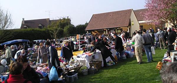 Le village a été envahi très tôt par une centaine d’exposants et très vite, la place de la mairie est devenue trop exigüe. Les stands ont proliférés rue du Pré des vignes, jalonnant toute la rue de la Mairie et pénétrant jusque dans les impasses des Lys et des Roses. Des dizaines de Sancéens ont vidé caves et greniers, rejoints par des exposants venus des villes et villages environnants, mais aussi de Seine st Denis et de l’Aisne.