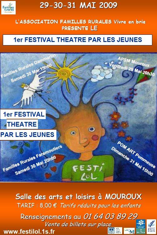 Familles Rurales Vivre en brie, organise les vendredi 29, Samedi 30 et dimanche 31 Mai, à Mouroux, un festival qui mettra en scène plusieurs troupes de théâtre composées de jeunes comédiens de la région. Son nom, « FESTILOL » a été choisi par les jeunes eux-mêmes, c’est cool.