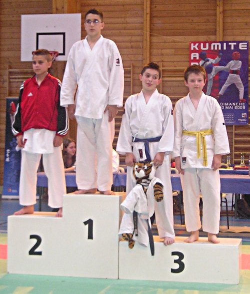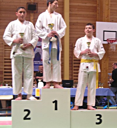 En poussin, Erwan DUNOT monte sur la plus haute marche du podium avec Guillaume GUICHAOUA 3ème en -25kg, tandis que Clément LEPINAY terminait à la 5ème place en + 30kg.