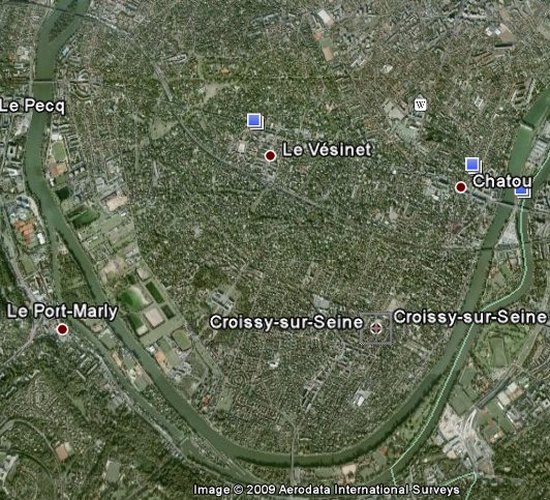 La courbe Les deux lettres "cr" m’intriguent depuis longtemps. Je me demande si elles ne constituent pas une espèce de préfixe utilisé dans les langues celtiques notamment pour désigner des objets présentant des formes courbes, incurvées. C’est là que nous rejoignons notre sujet. En effet, visualisons les formes associées à quelques-uns des termes que nous avons rencontré dans cet article : "crom" ou "Krom" (courbe), "crech" ou "Krech" (la colline), "crixos" (le frisé). Tous font bien référence à des formes arrondies, des courbes, des boucles comme celles du frisé. J’aimerais ajouter à cette liste le croissant (celui de Crécy) que le latin le fait dériver du verbe "crescere", c’est à dire "croître" (référence au cycle lunaire qui voit croître le quartier de lune) mais qui s’écrit "Kresk" en breton. Partant de ce constat et convaincu que la toponymie s’inspire d’abord des caractéristiques physiques des sites, je vous invite à observer les trois photos aériennes présentées ci-dessous : Alors, voila il me plait d’imaginer que tous ces "CRrrrr" pourraient avoir un lien avec la topographie et que la boucle du Crixos n’est peut-être pas en lien direct avec une tignasse, mais tout simplement avec la forme du Grand Morin à cet endroit qui dessine une boucle spectaculaire. Mon hypothèse, repose sur des observations, de l’intuition, mon imagination, et un zest de fantaisie. Les linguistes l’a qualifieront peut-être d’hérétique et non viable, mais enfin, elle me plait, c’est la mienne.