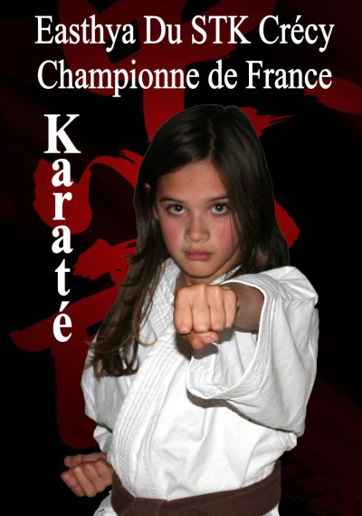 C’est la juste récompense de son travail acharné au STK Crécy avec ses professeurs Simon Amoussou et Kyarann Buchel, et les cours que lui dispensent Jean-Pierre Gavoille, Professeur des Clubs de l’ASK et conseiller technique Kata du STK Crécy. Un beau palmarès pour Easthya cette saison avec 1 titre en départemental, 1 titre en national et 3 gros interclubs Kata et combats gagnés. Pour sa première année d’existence, le STK est fier de pouvoir annoncer ce Titre de Champion de France, et espère pouvoir ainsi, encore plus motiver les licenciés du Club à suivre cette voie. Comme pour chaque Championnat de France Corpo, les compétiteurs sont associés à une entreprise ou à une Mairie. Easthya était pour ce Championnat associée à la Mairie de Crécy-la-Chapelle.