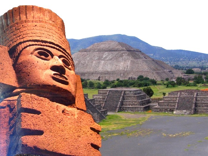 Mexico (2007) : site de Teotihuacan + statue installée dans le musée archéologique de la ville