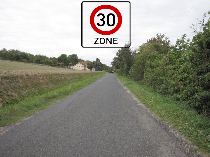 En principe ces panneaux se retrouvent plus en zone urbaine pour la sécurtité des piétons mais aussi pour( ce qui n’est pas le cas ici) les traversées soudaines de la voie et les sorties d’habitations bien souvent très proches de la chaussée.