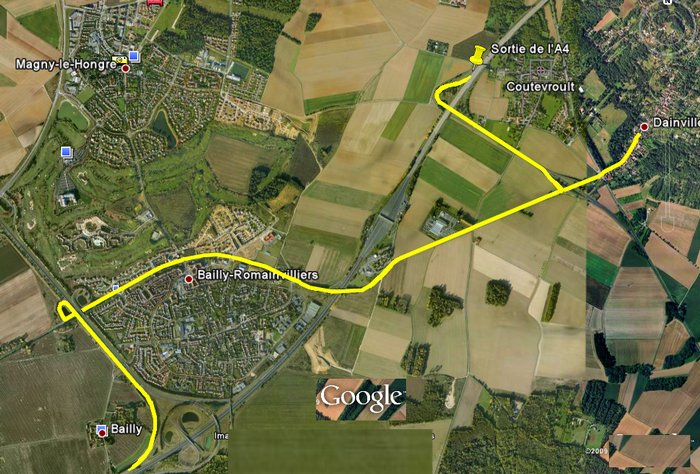 Si vous voulez éviter le péage et Bailly, prenez la direction Villeneuve Le Comte , arrivé aux portes de VLC, vous la contournez et vous rejoignez l’autoroute de l’Est, après le péage direction Paris.