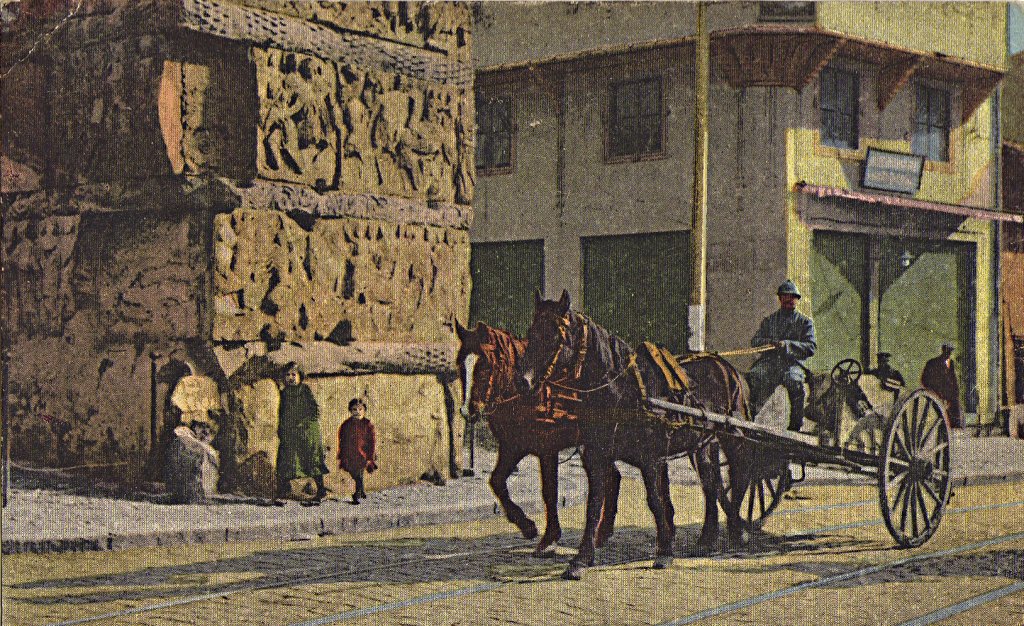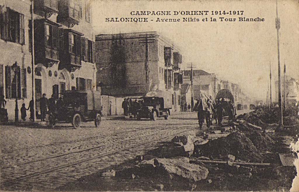 Cette carte, dixit le texte écrit par mon grand-père au dos, marque une escale à Rome du bateau qui le ramenait à Salonique sur le front oriental. Les grecs, tout comme les serbes étaient alliés des français.