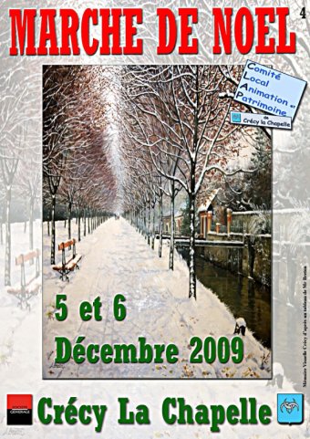 Le CLAP de Crécy la chapelle présentera son traditionnel Marché de Noël les 5 et 6 Décembre 2009 sur la Place du Marché.
