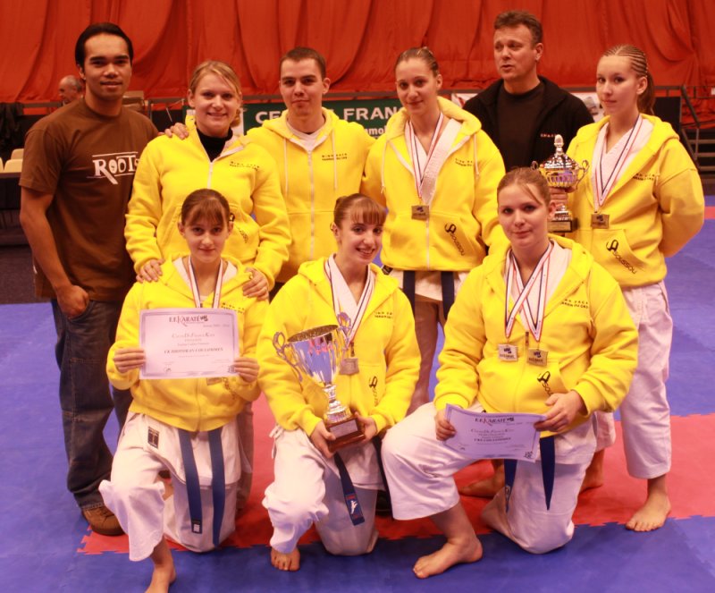![]() Yoann Prud’homme 3ème en minime -55kg à Eaubonne L’Open ADIDAS, au stade CHARLETTY, à Paris, voyait Caroline DELAGARDE rejoindre Yoan et Anaïs prendre part à une réunion où nombre des meilleurs compétiteurs français viennent préparer la saison de combat. ![]() Les filles du CKS avec Minh Dack, Gaëlle Pichon, Marc Ruelle et Olivier Rolland La Coupe de France Kata à CLERMONT FERRAND clôturait le mois de novembre. La délégation du CKS, est parti le vendredi et à rejoint en soirée le parrain du club, Minh DACK, numéro 1 français en KATA, venu encourager les filles engagées dans les épreuves individuelles et équipes. En junior, Marion DUMONT et Marine GARNIER perdaient respectivement au 1er et 2ème tour, avant d’être rejointe par Claire PICHON en équipe pour obtenir une belle troisième place alors qu’elle n’avait pas travaillé ensemble cette saison. ![]() Julie, caroline, Claire, Marine et Marion, 2 ème et 3ème en équipe Kata à Clermont-Ferrand. Par contre, en cadette, l’équipe composée de Caroline DELAGARDE, Julie DUMONT et encore Claire PICHON s’était préparée spécialement pour cette compétition en vue des prochains championnats. Belle réussite avec la première finale au niveau nationale pour le CKS, avec une prestation de qualité qui offre de belles perspectives à ces jeunes filles. Deux podiums en équipe pour ces cinq copines qui ont ravi Marc RUELLE et Gaëlle PICHON, leurs entraineurs, et Ollivier ROLLAND le président du CKS, qui les avaient accompagné et encouragé avec Minh DACK. Nous ne manquerons pas de les remercier et les congratuler au prochain pot de Noel fin décembre. Prochains rendez vous les passages de grades et les premiers championnats départementaux que nous ne manquerons pas de vous relater. |