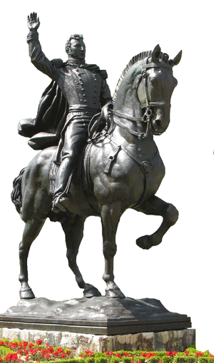 La statue équestre du Général Alvear occupe une place centrale au milieu du jardin d’Egreville |