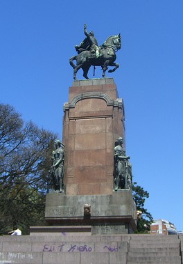 La même statue, telle que la verrez si vous passez par Buenos aires. Notez la position des figures allégoriques autour du socle. |