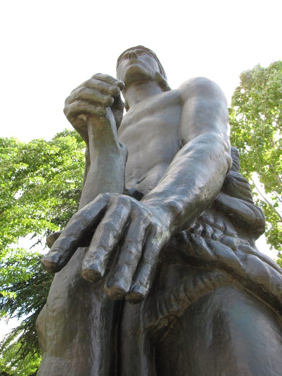 La plupart des œuvres maitresses de Bourdelle sont présentes dans le jardin, on peut citer parmi les plus célèbres : Héraklès archer, le Centaure mourant, les bas-reliefs du Théâtre des Champs-Élysées et tout particulièrement, car c’est la plus monumentale, la statue équestre du Général Alvear (1789-1852), entourée de ses quatre « figures allégoriques ». La statue équestre est la plus imposante des œuvres présentées dans ce jardin. C’est un ensemble de plusieurs sculptures. L’original, ou plus exactement la version livrée au commanditaire –la République Argentine- s’élève aujourd’hui sur l’une des places centrales de Buenos Aires. Commandé en 1913 par les argentins en hommage à l’un des chefs de l’indépendance, elle n’a été inauguré qu’en 1926, 13 ans plus tard (la guerre de 14/18 est passée par là). Le monument de Buenos Aires est composé d’un socle gigantesque de 14 mètres de haut (voir la photo trouvée grâce à Google), flanqué de quatre figures allégoriques : – La Force, L’Éloquence, La Liberté, La Victoire. Sur la photo de Buenos Aires, les figures allégoriques occupent une position singulière à la base du socle. En revanche à Egreville, la statue équestre repose sur un socle plus modeste, les figures allégoriques sont disposées autour du parterre de fleurs. Toutes les sculptures sont l’ échelle UN. Un peu par hasard, en passant rue de Lille (Paris), un jour où j’allais déjeuner à la cantine de la Caisse des Dépôts et Consignations", je me suis aperçu que les figures allégoriques de Bourdelle étaient aussi exposées en extérieur tout au long du musée d’Orsay.