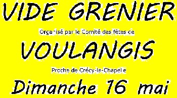 Le toujours excellent comité des fêtes de Voulangis organise le dimanche 16 mai prochain son traditionnel vide-grenier annuel.