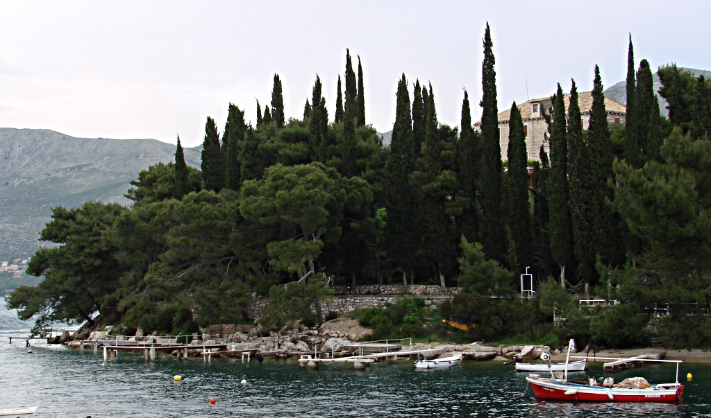 Cavtat, c’est ce petit village typique près duquel était construit notre hotel. Une très ancienne cité, créée par les grecs sous le nom d’Epidaure. Le village est devenu une destination à la mode à la belle saison, un peu le Saint-Tropez croate. La ville fut construite suivant un plan géomatrique que l’on retrouve un peu à Dubrovnik, et qui rapelle, un peu de loin, les bastides françaises. La plupart des monuments historiques appartiennent au style Renaissance, avec des traces du style gothique : Palais du Capitaine, fortifications, enceinte fortifiée de la ville, places, église Saint-Nicolas, Église Notre-Dame-de-Cavtat et couvent des Franciscains.