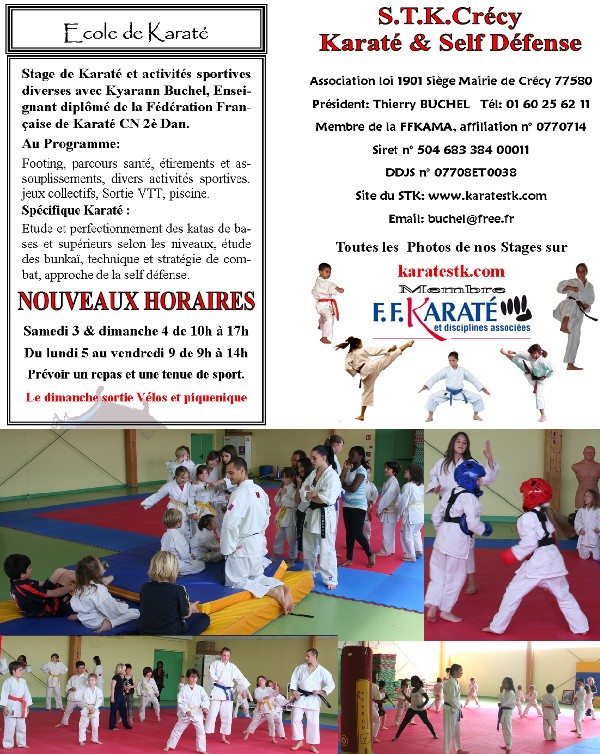 Sous la direction technique de Kyarann Buchel, les stages du STK Crécy qui regroupent entre 25 et 35 enfants ont pour principale vocation le Karaté : Initiation, perfectionnement pour certains, remise à niveau pour d’autres et préparations aux compétitions à venir pour nos compétiteurs.