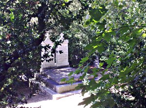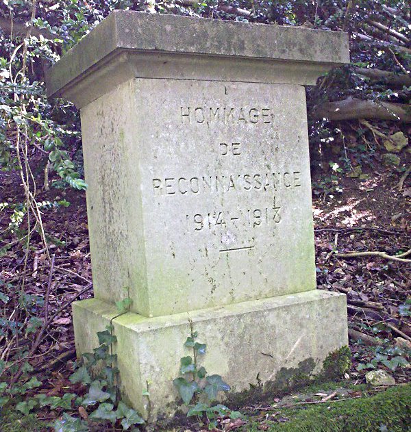 Cette stele se trouve dans le petit bois au dessus du cimetiere de la famille De Moustier a la Chapelle Jean-Jacques
