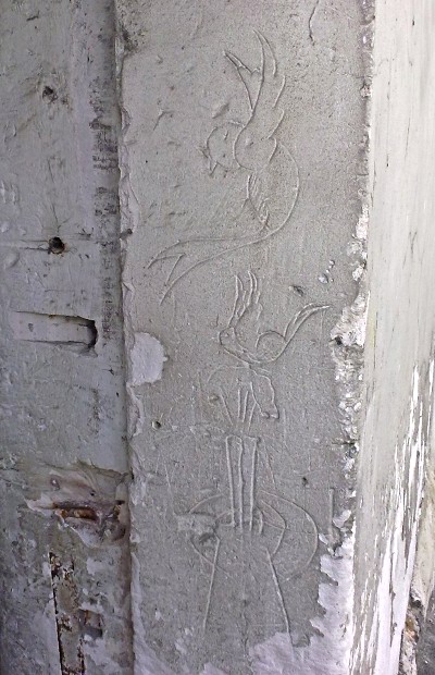 Pour les dessins sous le porche, vous pouvez les voir au 8 de cette même rue, mais j’en ignore l’origine et l’époque.