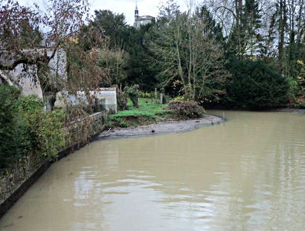Le mamelon de terre cerné par un méandre d’eau se dessine dans l’air.