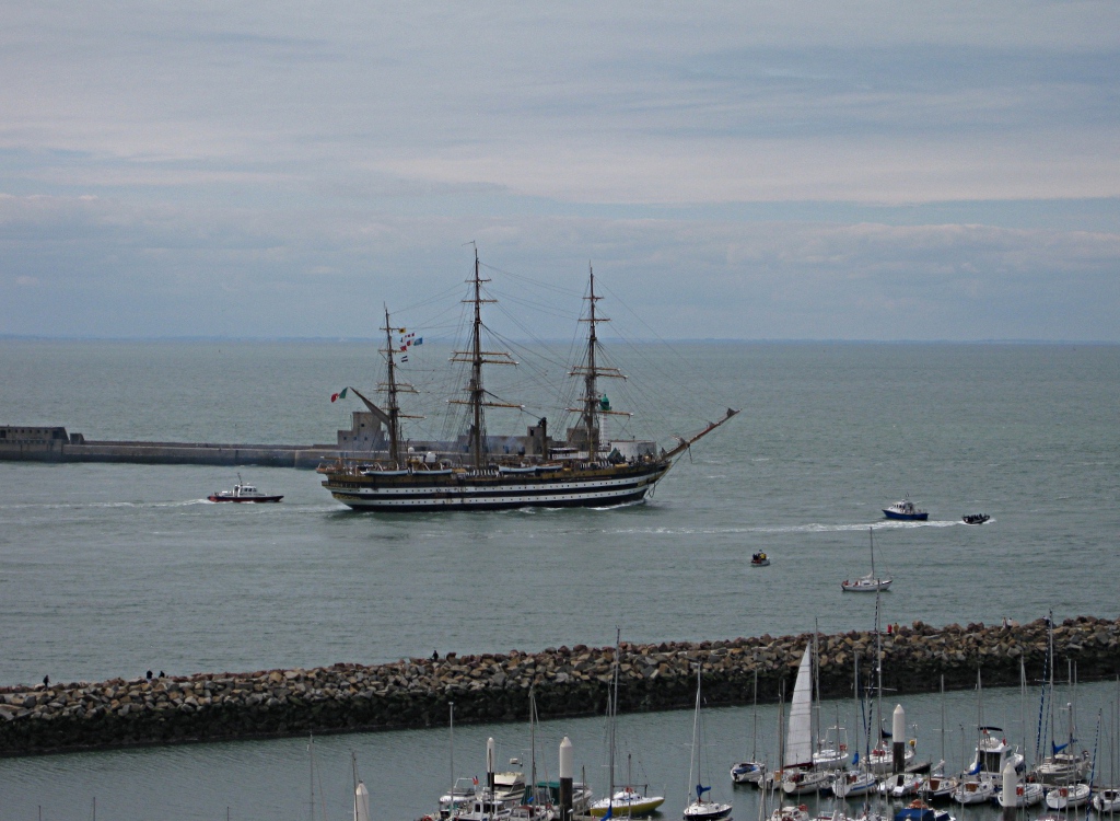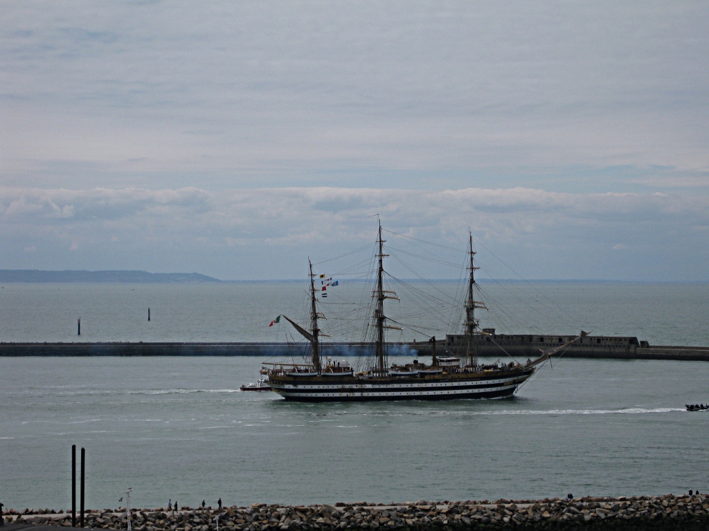 L’Amerigo Vespucci. Ce voilier, copie d’une frégate militaire du 19 ème siècle, a été construit à Naples à la demande de Mussolini. Il est destiné à la formation des futurs officiers de marine italiens. C’est l’un des plus anciens trois mâts carrés qui existent, le plus ancien navire-école italien encore utilisé, et l’un des plus grands voiliers-école militaires du monde. (Source Wikipedia)